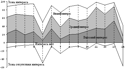 шкале «высокий, средний, низкий интерес, интереса нет вообще») превалирует у