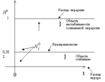 энтропии квази-равновесного состояния системы (h(h = 0,382). Вероятность изменения иерархии семьи p < 0,5, то