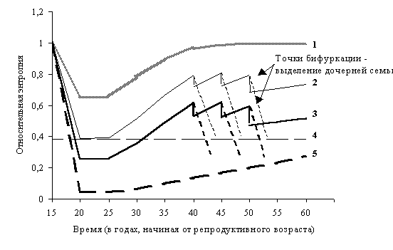 (см. рис.3-а). В этом случае почти на всем протяжении времени развития семьи ее