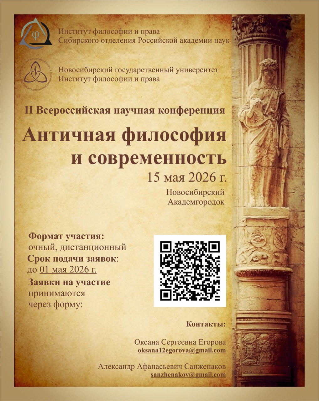 15 мая 2026 года в ИФПР СО РАН (Новосибирск, Академгородок) пройдет II Всероссийская научная конференция «Античная философия и современность».