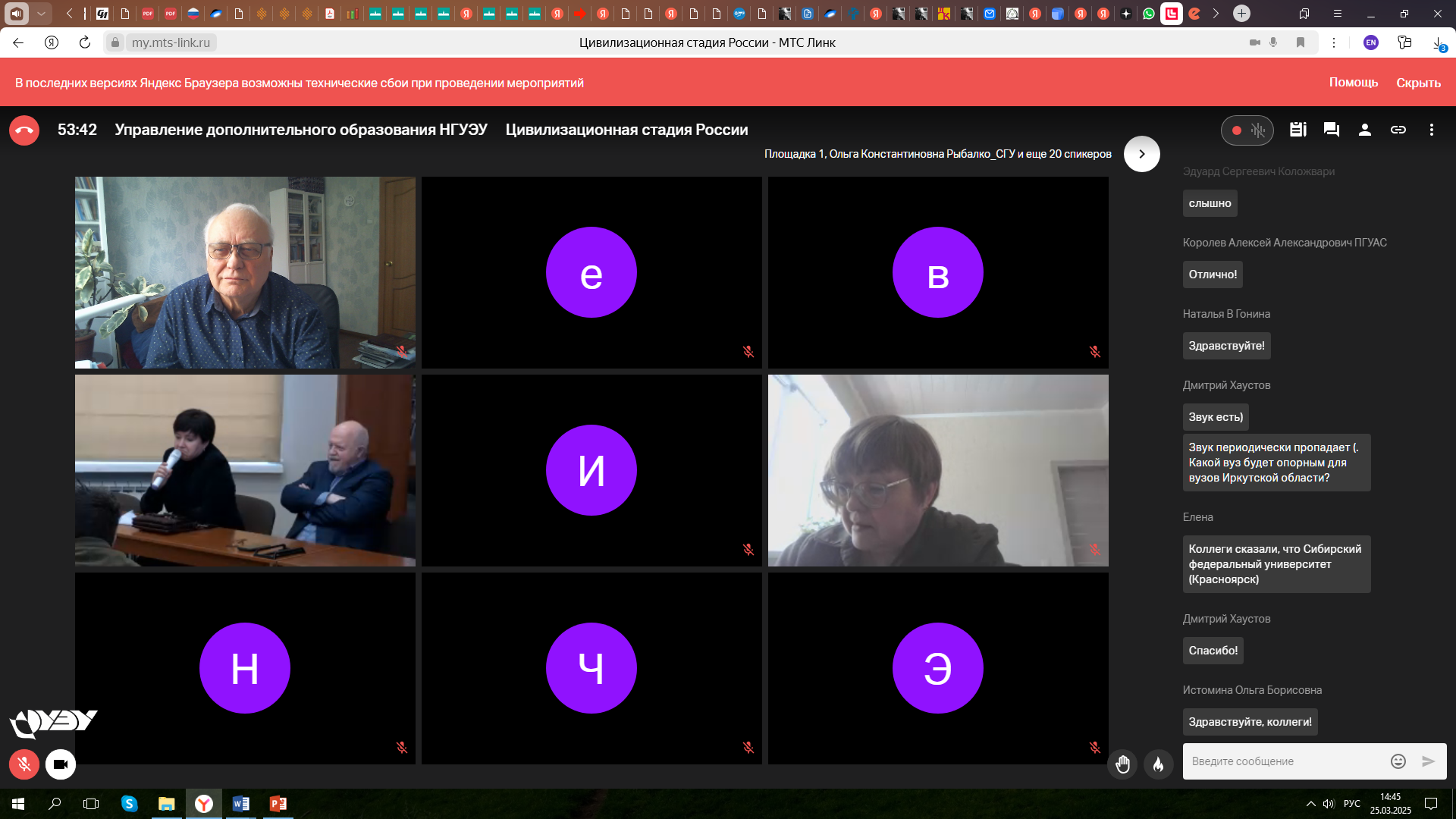 25 марта 2025 г. сотрудники отдела социальных и правовых исследований ИФПР СО РАН, г.н.с., доктор философских наук, профессор Юрий Владимирович Попков и в.н.с., доктор философских наук Анна Анатольевна Изгарская приняли участие в качестве экспертов в заседание круглого стола «Основы российской государственности: цивилизационная стадия России». Мероприятие было организовано в рамках проекта «ДНК России» и проходило на базе опорно-методического центра Новосибирского государственного университета экономики и управления (НГУЭУ). Поводом для работы экспертов стал выход и внедрение в образовательный процесс отечественных вузов учебного пособия А.Д. Харичев, А.В. Полосин, А.В. Селезнева «Основы российской государственности».