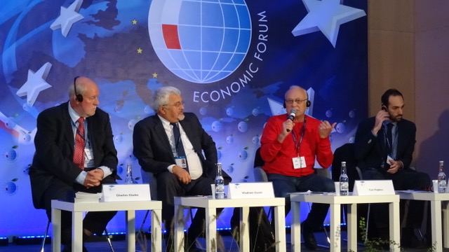 Польша, Крыница-Здруй, 5-7 сентября 2017 г. С 5 по 7 сентября 2017 года в городе Крыница-Здруй (Польша) проходил XXVII Международный экономический форум, который называют «польским Давосом». Он является самой крупной площадкой Восточной Европы, на которой ежегодно встречаются политики, включая первых лиц государств, бизнесмены, ученые, работники культуры, журналисты, общественные деятели разных стран мира для обсуждения актуальных проблем современности. Одним из 4 тысяч гостей форума был заместитель директора по научной работе Института философии и права СО РАН Ю.В.Попков. Он участвовал в панельной дискуссии «Миграционный кризис – различные модели решения». В его выступлении затрагивались общие вопросы исследования и регулирования миграционных процессов, приведены обобщенные результаты анализа влияния этих процессов на развитие Сибири с момента ее присоединения к России, выделены проблемы, рождаемые миграционной ситуацией в данном регионе в настоящее время. Не ограничиваясь констатацией конкретных проявлений и последствий миграционных процессов, Ю.В.Попков сделал акцент на необходимости системного и комплексного подхода к их анализу, а поиск способов решения существующего миграционного кризиса, с его точки зрения, не должен ограничиваться обсуждением проблемы распределения квот на прием мигрантов в разных странах Европейского союза, как это иногда бывает, а предполагает предварительное осмысление его фундаментальных причин, среди которых геополитические и экономические являются определяющими. Другой важный вопрос – необходимость ясного понимания того, в чем состоят в рамках данного кризиса интересы не только самих мигрантов, но и политических и бизнес элит, а также населения принимающего сообщества. Только в результате учета и согласования этих интересов может быть создана адекватная основа для преодоления миграционного кризиса.