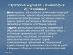 Журнал «Философия образования» и Приложение к журналу предоставляют собой творческую «площадку» для отечественных и зарубежных авторов по вопросам онтологических и аксиологических оснований педагогического процесса, теории и практики современного образования. За период 2001–2017 гг. издано: 73 номера журнала «Философия образования»; 57 монографий; 3 учебных пособия; 38 сборников одноименной серии. Членами Редакционной коллегии журнала являются ведущие специалисты в образовательной сфере, в том числе члены РАО: академик РАО Корольков А.А., академик РАО Смолин О.Н., член-корр. РАО Жафяров А.Ж., академик Турбовской Я.С. и др.