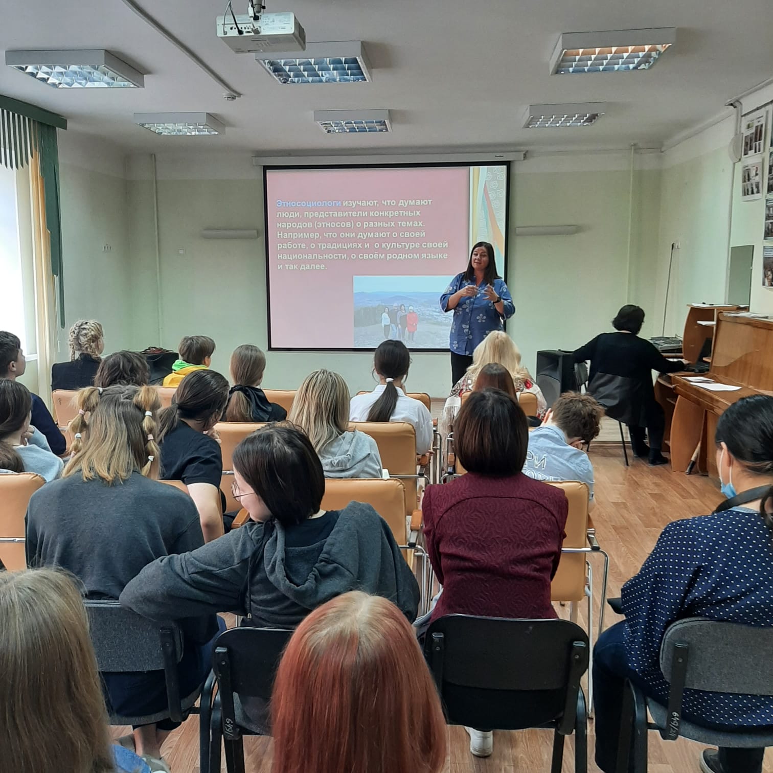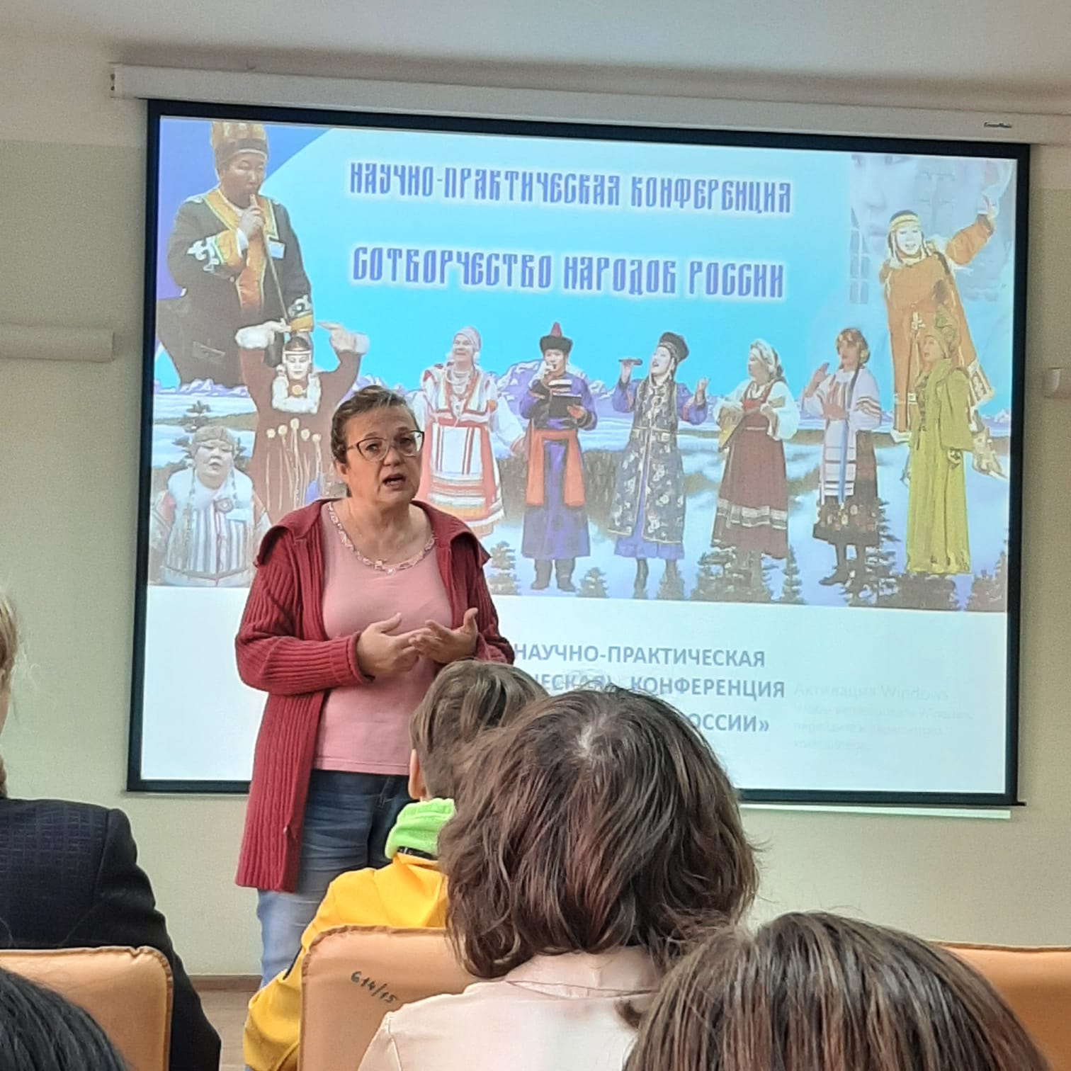 24.09.2022г. В МБУ МЦ «Калейдоскоп» прошла Районная научно-практическая (научно-творческая) конференция «Сотворчество народов России». Конференция была посвящена Году культурного наследия народов России. К задачам конференции организаторы, в том числе, отнесли содействие развитию интереса молодежи к изучению и пониманию национальных традиций. С этой целью на мероприятие в качестве пленарных докладчиков были приглашены д.филос.н., ведущий научный сотрудник ИФПР СО РАН Елена Анатольевна Ерохина, сделавшая доклад на тему «Этнокультурные сообщества в глобальной информационной среде», и канд.филос.н., старший научный сотрудник ИФПР СО РАН Светлана Александровна Мадюкова, представившая доклад «Традиционная культура народов Южной Сибири: особенности существования в современности». В числе слушателей были учащиеся из МАОУ «Гимназия № 3 в Академгородке», МБОУ «Гимназия № 5», а также Новосибирского политехнического колледжа. Кроме того, мероприятие включало серию мастер-классов, таких, например, как «Раскрашиваем традиционные костюмы народов России», «Народные музыкальные инструменты, народные куклы и кукольные игрушки» и др., а также Выставки этнических кукол и книг из серии «Памятники фольклора народов Сибири и Дальнего Востока».