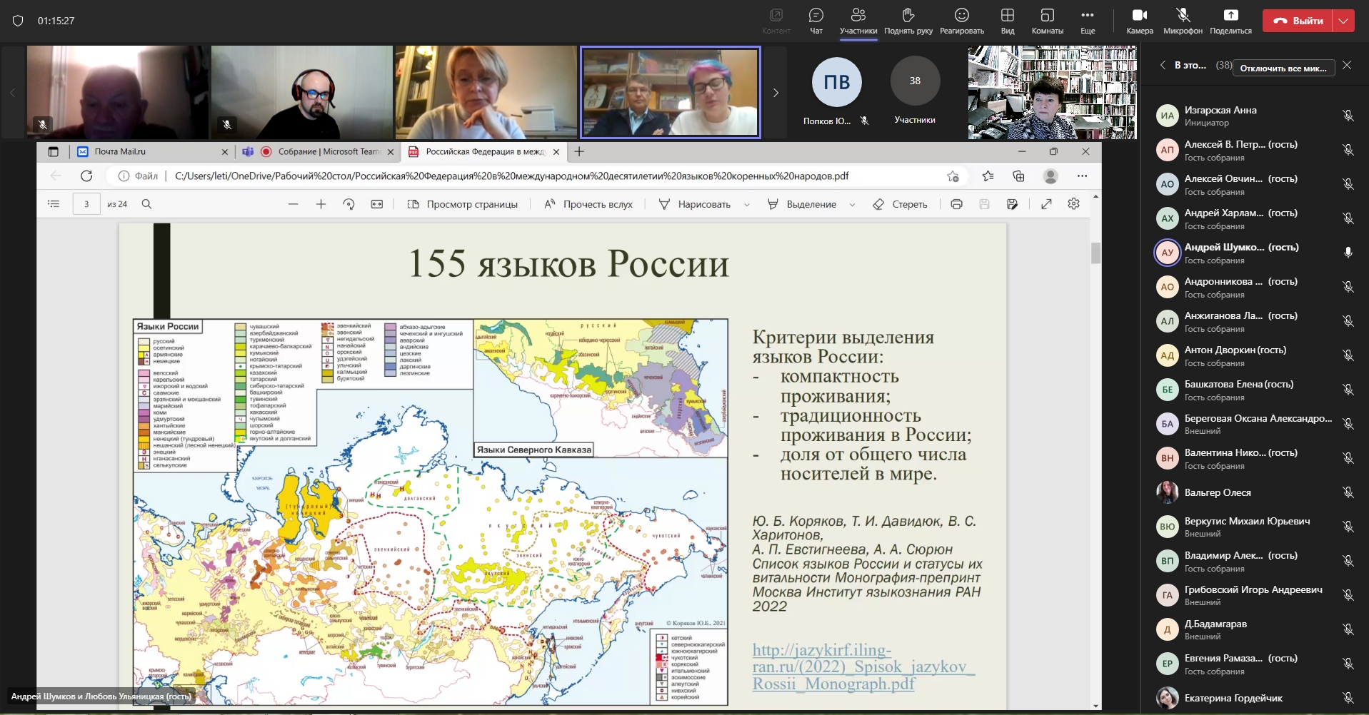 28 января 2023 г. состоялось IV заседание Всероссийского научного вебинара по проблемам социальных и гуманитарных наук «Соединяем пространства» с международным участием. Мероприятие было организовано совместно с кафедрой иностранных языков Санкт-Петербургского государственного электротехнического университета им. В.И. Ульянова-Ленина «ЛЭТИ» и Московским Обществом Психоаналитиков. Вебинар объединил на своей площадке 40 исследователей из разных городов России (Абакан, Москва, Санкт-Петербург, Владивосток, Новосибирск), Казахстана (Алматы, Павлодар) и Монголии (Улан-Батор).