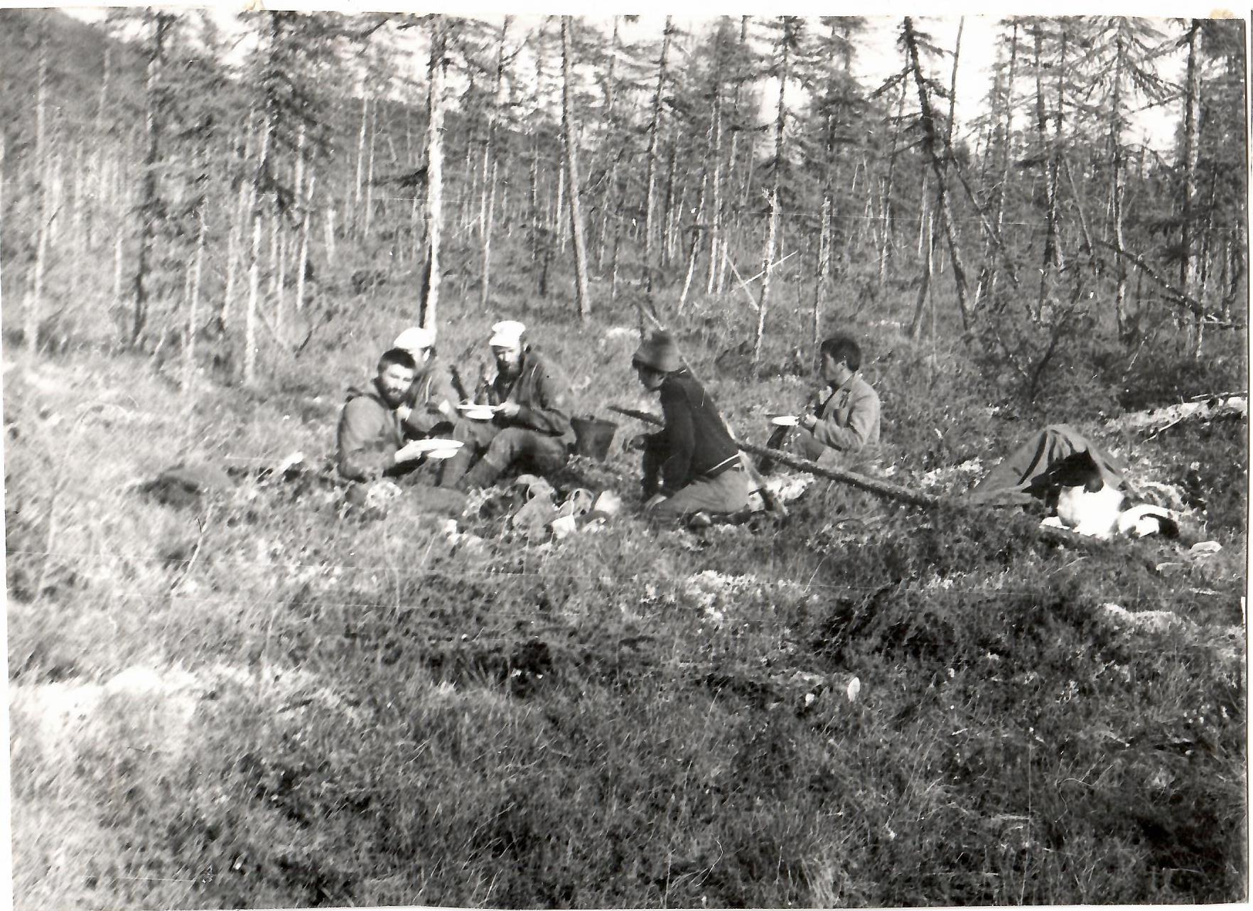 Июль-август 1985. Томпонский эксперимент. Ю.В. Попков в тайге, р. Томпо