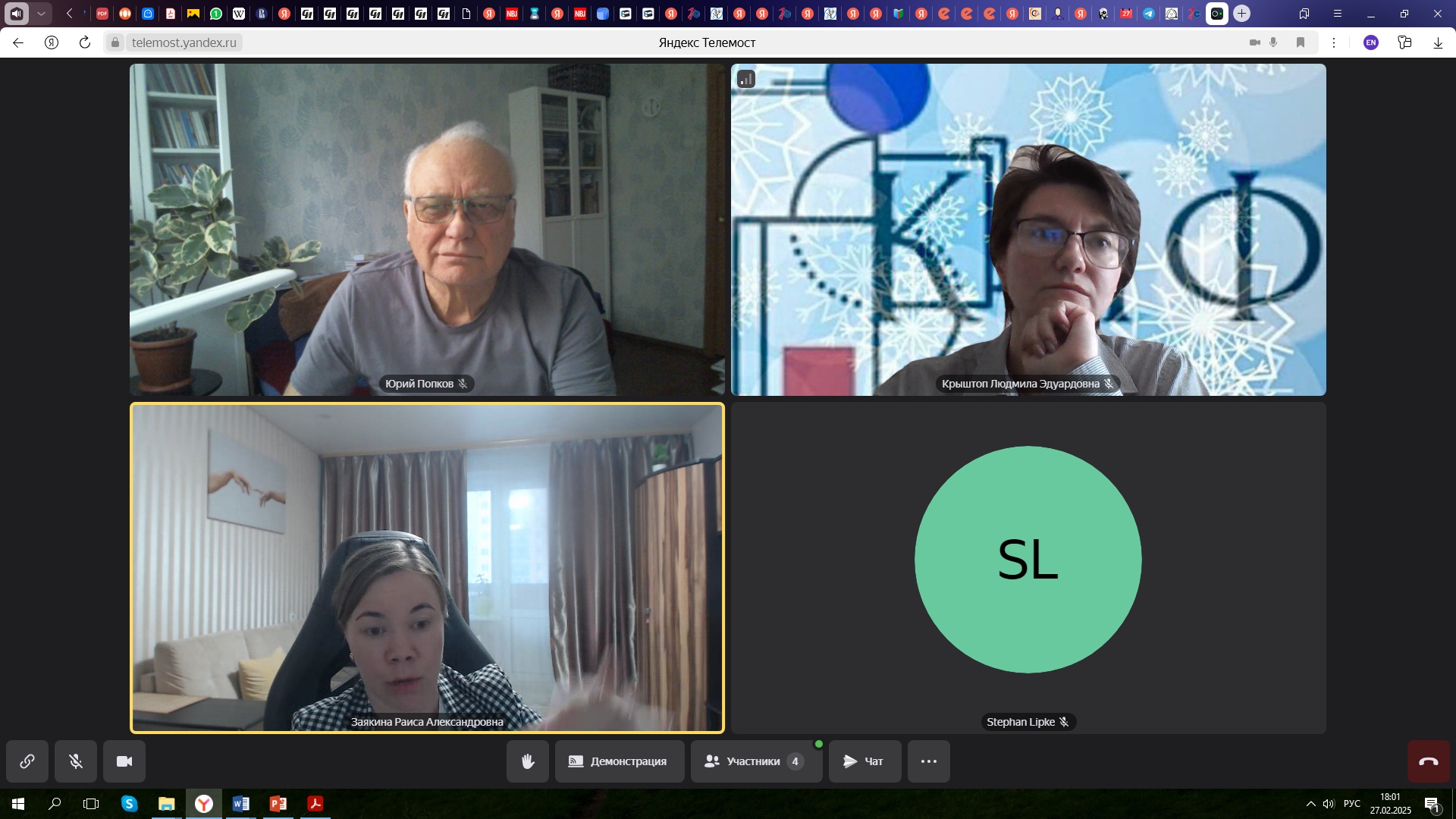27 февраля 2025 года г.н.с. ИФПР СО РАН, профессор Ю.В. Попков принял участие в работе научной конференции с международным участием «Сагадеевские чтения. Диалог философских культур», основной темой которой была «Репрезентации и рецепции традиций в философском диалоге культур». Он представил доклад «Этнокультурный неотрадиционализм как рефлексия культур: концептуальные основы и визуальные эффекты».