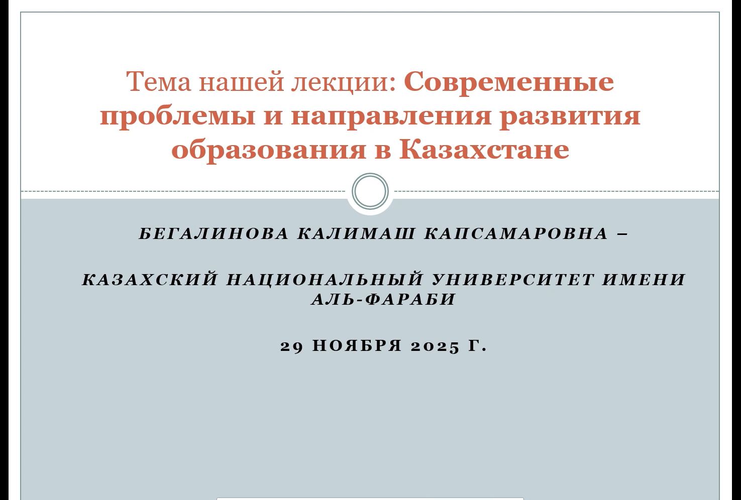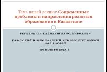 Доклад «Современные проблемы и направление развития высшего образования в Казахстане» сделала профессор кафедры религиоведения и культурологии Казахского национального университета аль-Фараби, доктор философских наук, профессор Калимаш Капсамаровна Бегалинова. За основу доклада был взят «Национальный доклад о состоянии и развитии системы высшего образования Республики Казахстан за 2023–2024 гг.» (URL: https://enic-kazakhstan.edu.kz/files/1744864271/doklad-mnvo-rus-17-04-2025-postranichno.pdf). В самом начале доклада К.К. Бегалинова описала структуру высшего образования, дала характеристику текущего состояния и перспектив интенсивно формирующихся взаимосвязей вузов Казахстана с мировыми научными и образовательными центрами. К.К. Бегалинова отметила, что образование является зеркалом, в котором отражаются проблемы развития общества, и обозначила вызовы, стоящие перед высшей школой Казахстана. Было показано, что на систему высшего образования влияет сложившаяся ситуация неравенства между городом и сельской местностью, между центром и регионами страны. Как и в Российской Федерации, в Казахстане существует кадровый дефицит и проблема выгорания педагогов. В период пандемии 2019 г. уровень цифровизации учебных заведений возрос, но и сегодня он остается недостаточным для решения современных образовательных задач. К.К. Бегалинова описала проблемы, возникающие у казахских вузов в контексте глобальных вызовов. Глобальные тренды несут с собой коммерциализацию образования, «макдональдизацию» университетов (господство представления об образовании как услуге). В результате главная миссия университета в обществе – быть центром разума и культуры – сегодня утрачивается. Присутствующие познакомились с имеющимися успехами и планируемыми государством Республики Казахстан направлениями развития высшей школы, с намечающимися новыми трендами (например, «Lifelong learning», инклюзивное образование, цифровое обучение). К.К. Бегалинова отметила, что необходим возврат к идее университета как пространства становления человека мыслящего, чувствующего, нравственно-ответственного. Докладчик подчеркнула, что сегодня университет должен не только давать профессию, он должен формировать способность ориентироваться в современном мире, главными характеристиками которого становятся возрастающая неопределенность и сложность этических ориентиров.