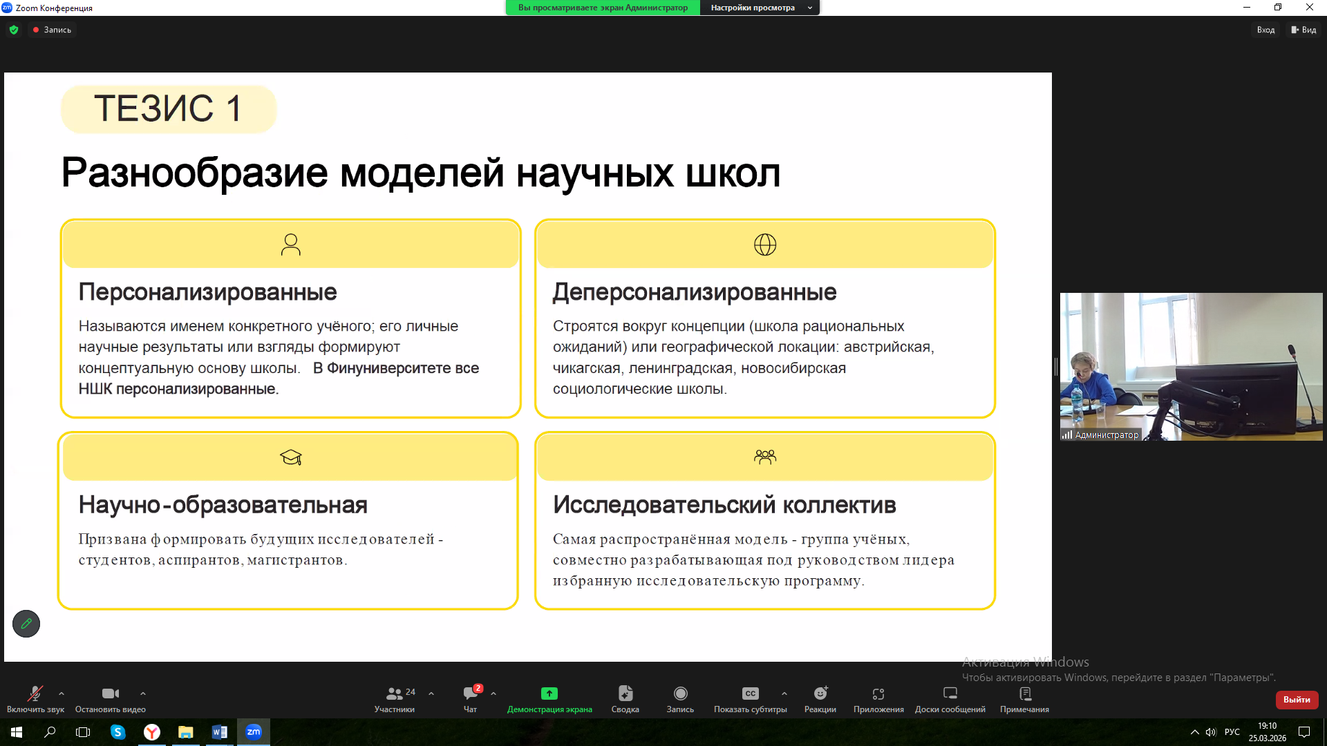 Юрий Владимирович в своем выступлении затронул ряд общих вопросов: несмотря на актуализацию темы наставничества на уровне государственной политики, включая утверждение в 2025 году Правительством РФ «Концепции развития наставничества в Российской Федерации на период до 2030 года» до сих пор соответствующая работа осуществляется в основном за счет энтузиазма отдельных научных коллективов и их лидеров, а не путем создания серьезных институциональных механизмов ее поддержки; так, основной принцип наставничества «Делай, как я» невозможно осуществлять в социологии в ситуации отсутствия в базовом бюджетном финансировании средств для проведения конкретных исследований, в процессе которых только и возможно эффективное взаимодействие наставника и начинающего социолога, становление последнего в качестве специалиста; существующая грантовская система финансирования исследований имеет ограничения и не может компенсировать недостаток бюджетных ресурсов для серьезных научных разработок.