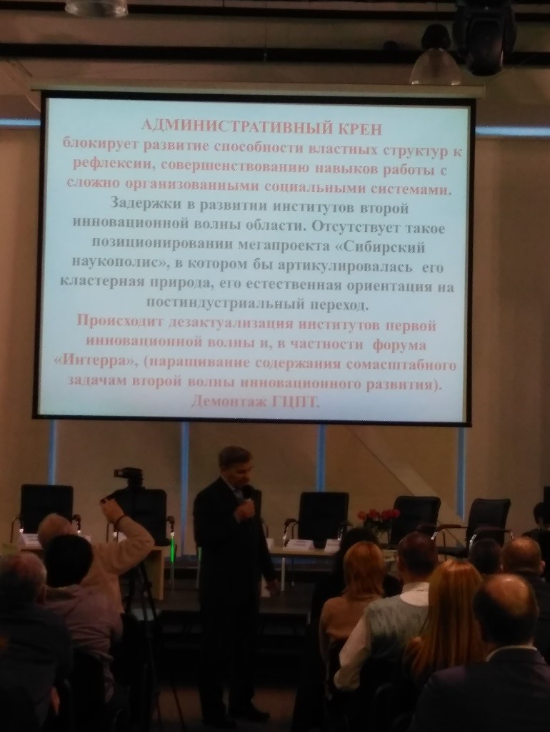А.А. Гордиенко (д.философ.н., ведущий научный сотрудник Института философии и права СО РАН) участвовал в работе круглого стола «Академгородок между прошлым и будущим» где обсуждались вопросы будущего развития Академгородка.