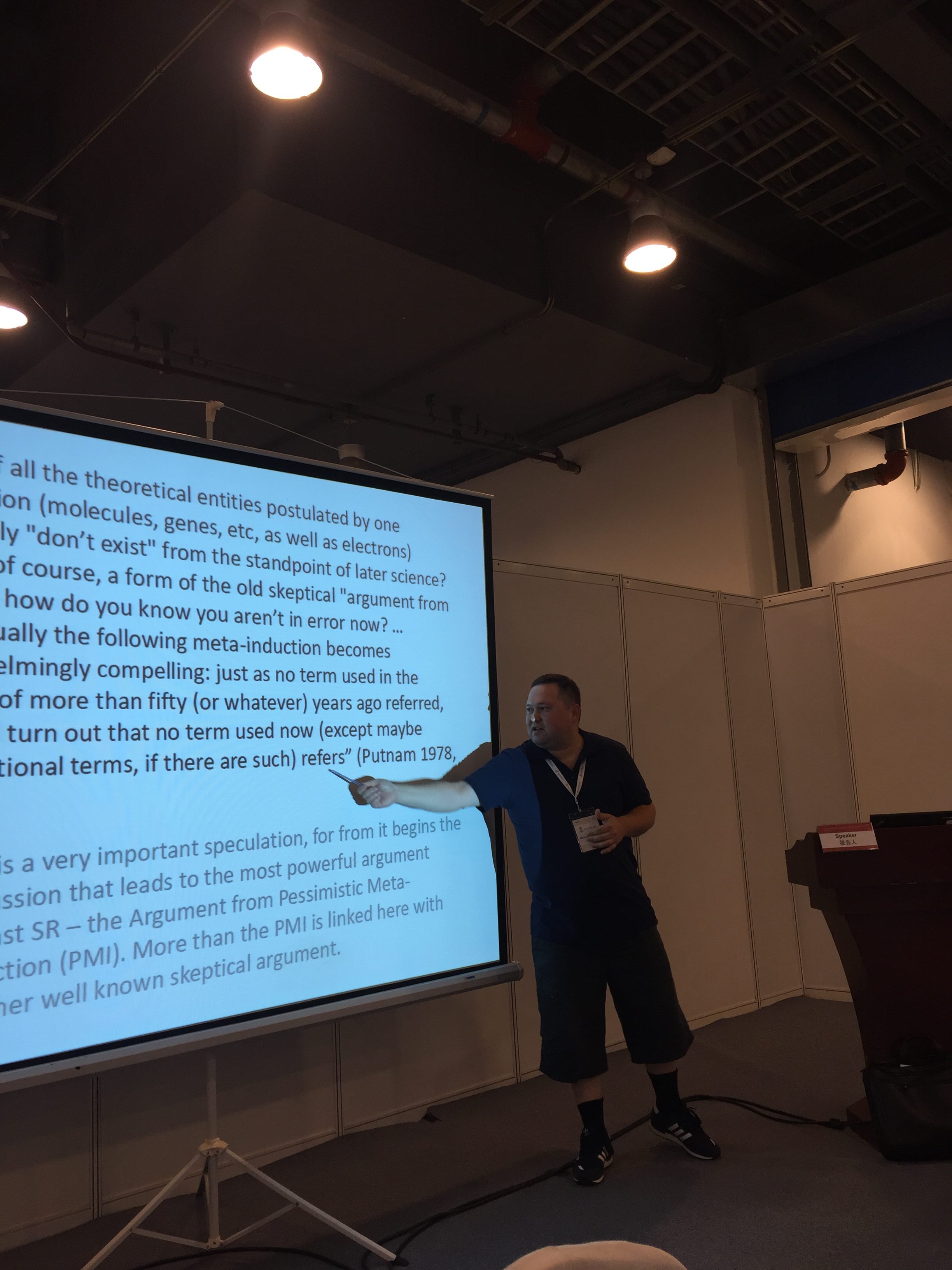 В.В. Целищев выступил с докладом «Интенсиональность Второй теоремы Геделя и природа саморефлексивности» на секции «Философия математики». Ведущий научный сотрудник д.филос.н. Н.В. Головко выступил с докладом «Онтологическая элиминация, аргумент от ошибки и реальные паттерны» на секции «Философия науки», где обратился к частному решению проблемы онтологической элиминации в постановке М. Девитта на основании авторской интерпретации концепции реальных паттернов Д. Деннета как фундаментальной концепции существования и в качестве эвристики полученного решения привел пример такой концепции развития научного знания, в которой одновременно будут справедливы рассуждения Л. Лаудана о том, что реальная история науки противоречит идее сходимости научных теорий, и проблема пессимистической мета-индукции не будет иметь решающего значения для опровержения научного реализма на заданном историческом отрезке времени.