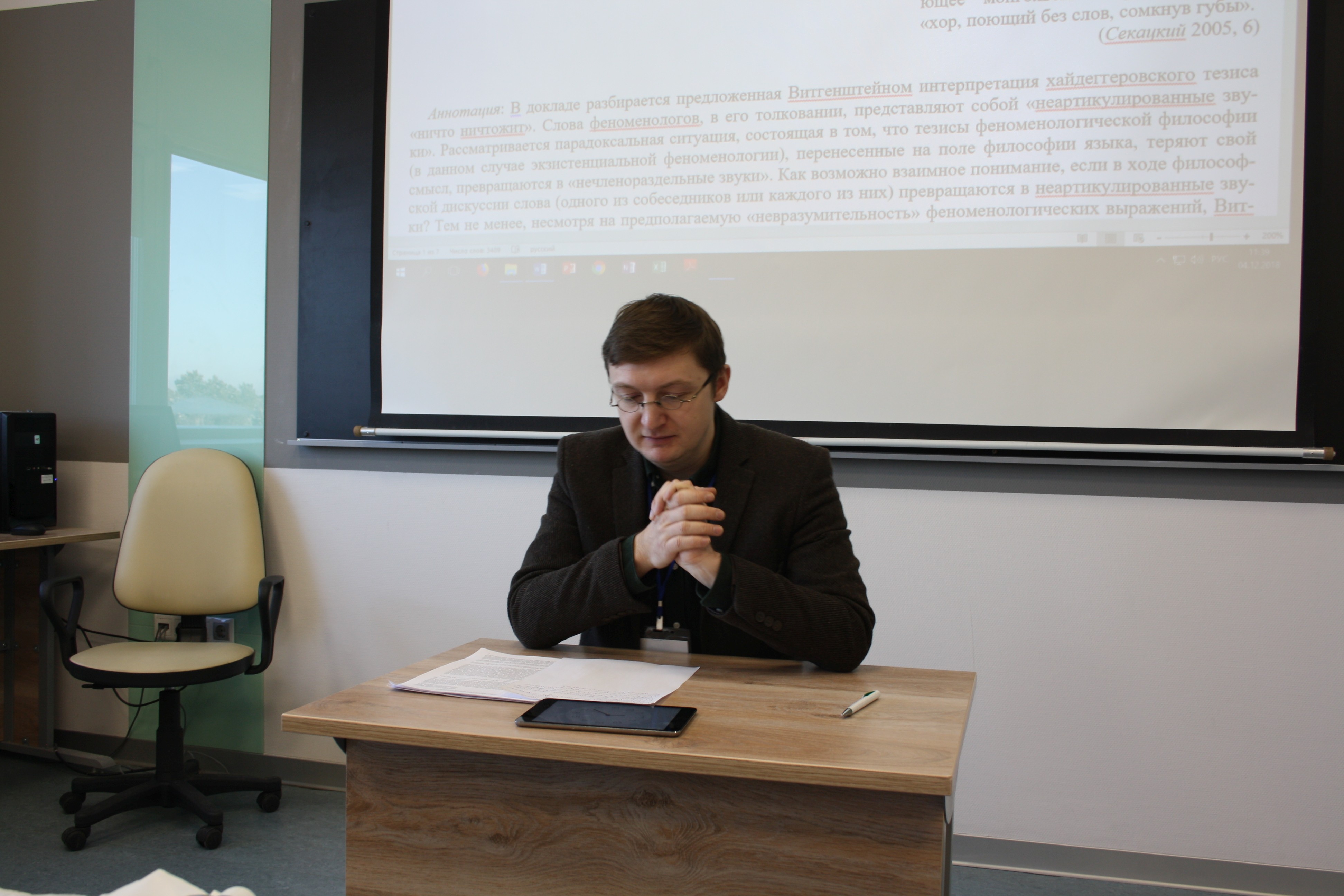 Во второй день конференции, 5 декабря, в Технопарке Новосибирского Академгородка состоялся Круглый стол «Цели философской деятельности в рамках научного сообщества», организованный Институтом философии и права СО РАН и научно-образовательным проектом «Гуманитарная экспертная школа». Перед молодыми философами был поставлен вопрос: может ли философия претендовать на то, что ее цели и задачи отличаются от научных? Если да, то в чем их специфика? Ответы были предложены самые разнообразные: философия и есть наука; философия является помощницей науки, создавая метаязык для выстраивания связи между различными научными дисциплинами; философия значительно отличается от науки, ибо последняя работает с уже имеющимися смыслами, в то время как первая создает смыслы, расширяя границы осмысленного. В ходе четырехчасовой беседы было рассмотрено множество вопросов, касающихся специфики философской деятельности и тех затруднений, которые возникают при попытке отрефлексировать ее цели и результаты.