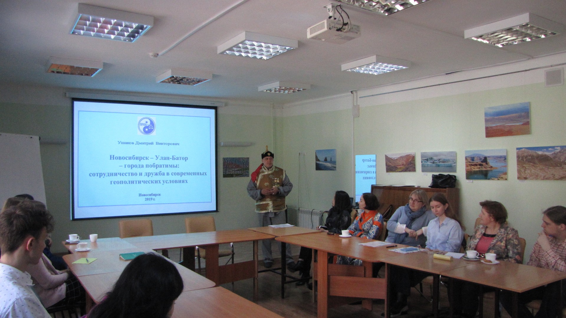 Ушаков Дмитрий Викторович, к. филос. н., с. н. с. Института философии и права СО РАН, сделал доклад «Новосибирск – Улан-Батор – города побратимы: сотрудничество и дружба в современных геополитических условиях».