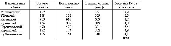 Недород в западной и центральной группах районов также является отрицательной причиной на закрепление переселенцев в колхозах. Приведенные выше данные показывают, что основная масса обратников падает на эти районы, среди обратно выехавших имеется значительная часть хозяйств, сдавших обратно колхозам полученные ими дома, коров и мелкий скот, возвративших досрочно денежные и продовольственные ссуды.