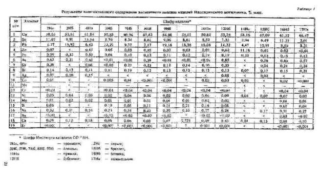 сурьмы, висмута. Есть все основания выделить данное изделие в разряд импортных.