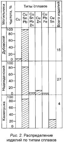 сплавов, выявленных для каждого памятника, показан на рис.2. Основная масса