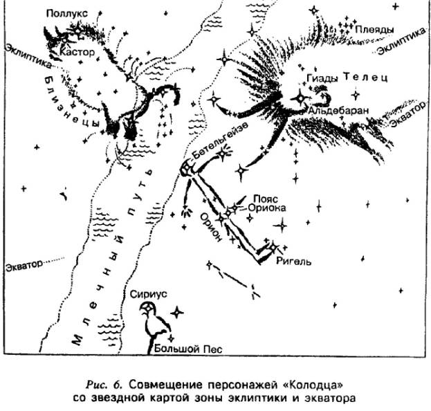 реконструированный шаг: наложим персонажи сцены в “Колодце” на звездную карту,