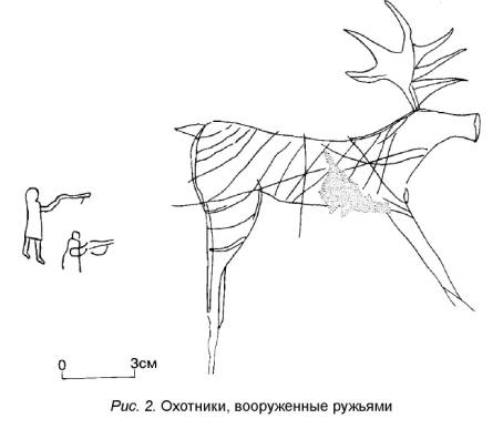 сглаженной веками, “преследуют” охотники, вооруженные ружьями (рис.2).