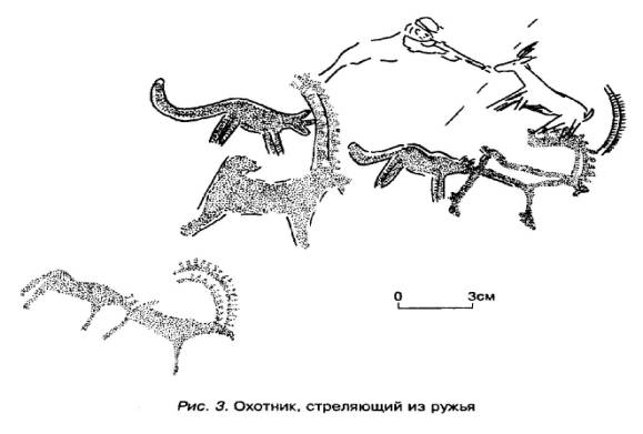 изображениями лучников, преследующих и убивающих копытных, прочерчены два
