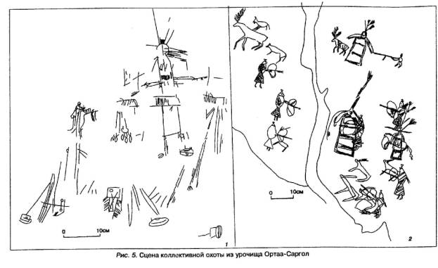 опубликованных М.А.Дэвлет, известна сцена коллективной охоты из урочища