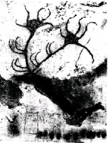 Переходя от общих рассуждений к практическим действиям, обратимся к истолкованию живописного изображения животного из “Большого зала” Ляско, именуемого археологами “оленем с фантастическими рогами” (рис. 1)