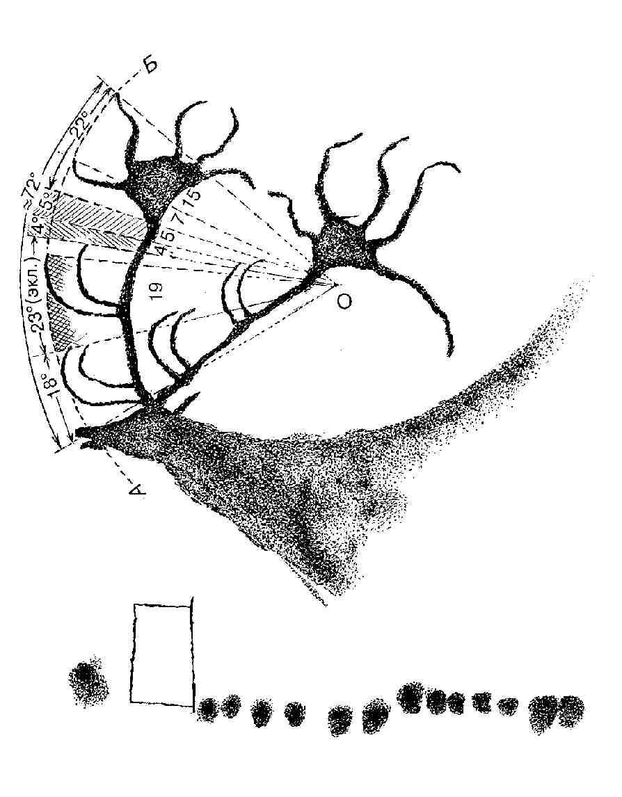 Рис. 5. Дуга АБ, которая, возможно, определяла позиции размещения отростков рогов. |